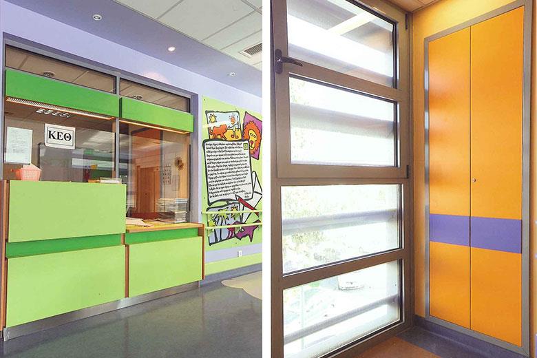 Εξοπλισμός Αιθουσών, Βιβλιοθήκες, Πίνακες Διδασκαλίας, Διαδραστικές Αίθουσες, Πέργκολες Προαυλίου, Ερμάρια, Lockers Μαθητών, Δάπεδα, Θρανία Μαθητών, Γραφεία Καθηγητών, Αίθουσες Συνεδριάσεων, Παράθυρα, Πόρτες, Χωρίσματα WC, κ.α.