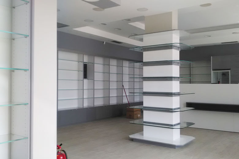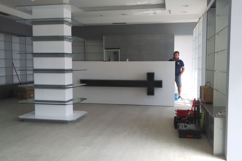 Η SIGMA WOOD ανέλαβε όλες τις κατασκευές του νέου φαρμακείου συνδυάζοντας με το ξύλο και άλλα υλικά όπως γυαλί και μέταλλο.